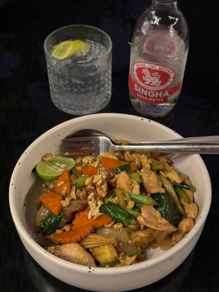 Enfin, pour les gourmands et amateurs de douceurs, deux adresses valent le détour : Pak Pak Vegan Food, qui valorise les produits locaux dans des recettes végétales généreuses et colorées : smoothie bowls, curry de légumes, burgers végé. Les prix restent corrects (150–220 THB) et l’ambiance est toujours calme et agréable. Sweet Cake, idéal dès le matin pour croissants, banana bread et cafés savoureux.