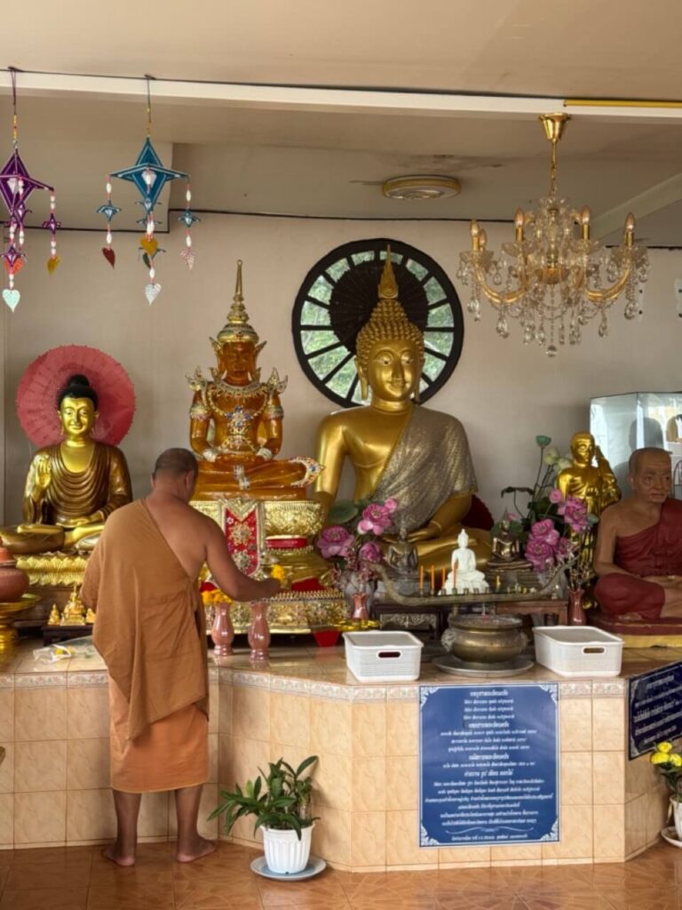 Perché sur une colline, le Wat Samakeetham veille sur l’île et offre un point de vue agréable sur la mer. Pour y accéder, une route courte mais légèrement montante permet d’arriver sans effort. Une fois sur place, l’ambiance est modeste et paisible. Les visiteurs sont invités à respecter les codes traditionnels : épaules et genoux couverts, et pourquoi pas déposer une petite offrande.